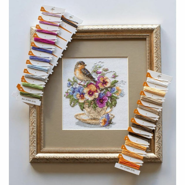 Kit de broderie à réaliser au point de croix compté, demi point croix, point arrière, sur une toile Zweigart Aida blanche 5.4 points au cm, les fils à broder Anchor coton mouliné 21 couleurs triés sur carte, (le dessin n'est pas imprimé sur la toile), suivant le diagramme en couleurs, explications, Dimensions de l'ouvrage terminé : 16 x 18 cm.