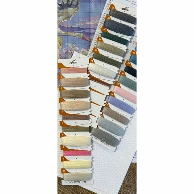 Kit de broderie à réaliser au point de croix compté, sur une toile zweigart Aida blanche 5.4 points au cm, les fils Acrylique 31 couleurs triés sur carte, (le dessin n'est pas imprimé sur la toile), suivant le diagramme en couleurs, explications fournie .