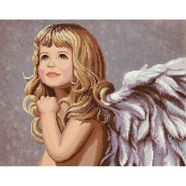 sur toile Aïda 5.4 points au cm. Broderie partielle sur un fond imprimé : seuls les motifs de premier plan sont brodés au point de croix compté d'après le diagramme fourni.