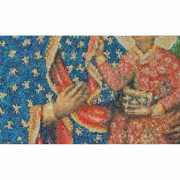 Kit de broderie à réaliser au point de croix compté sur une toile Aida blanche 6.4 points au cm, les fils DMC et fils métallisé triés sur carte (Le dessin n'est pas imprimé sur la toile), suivant le digramme et explications fournie, Dimensions du modèle terminé : 22 x 30 cm,