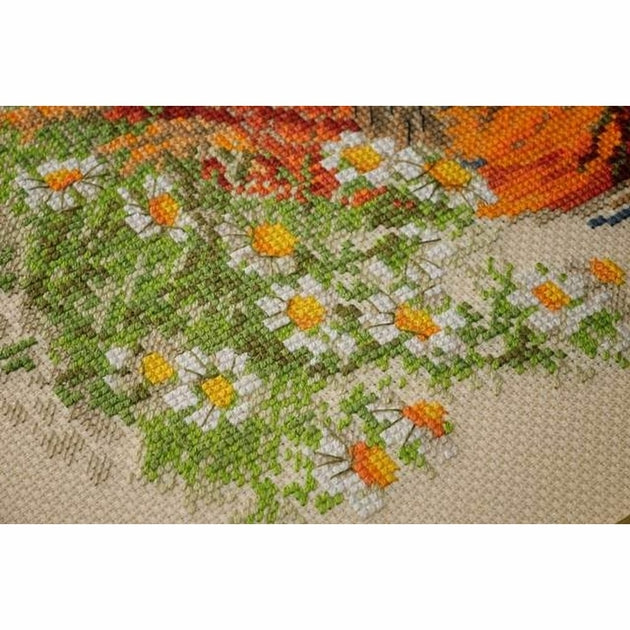 Kit de broderie à réaliser au point de croix compté sur une toile Aida beige 5.4 points au cm, les fils Anchor 22 couleurs triés sur carte, (Le dessin n'est pas imprimé sur la toile), suivant le diagramme et explications fournie, Dimensions du modèle terminé : 30 x 40 cm .