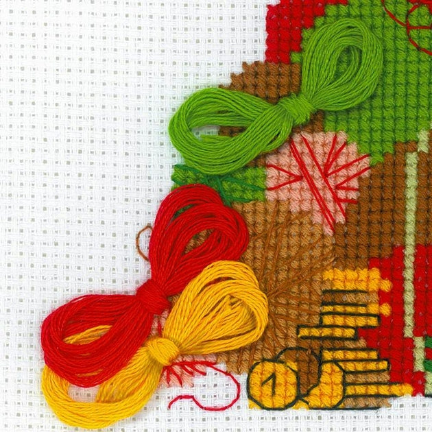 sur une toile zweigart aida blanche 5.4 points au cm - 11 couleurs Anchor stranded coton -