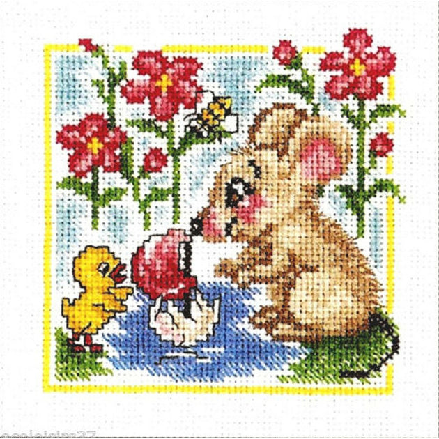( le dessin n'est pas imprimé sur la toile ) - Dimensions de l'ouvrage terminé : 13 x 13 cm