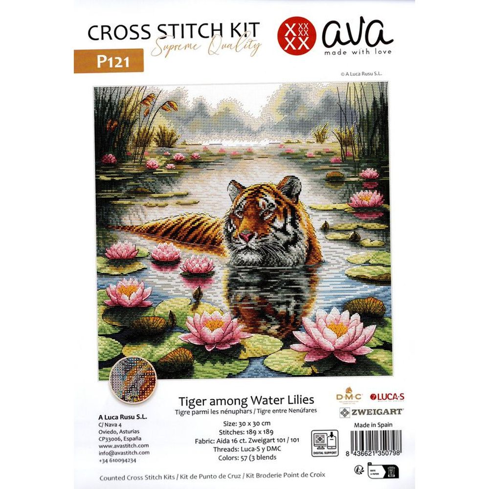 Donnez vie à la beauté de la nature avec le kit de point de croix « Tigre parmi les nénuphars ». Ce motif allie précision et élégance, représentant un tigre majestueux entouré de délicats nénuphars. Réalisé sur une toile Aida 16 de qualité supérieure, il est parfait pour les brodeuses qui apprécient les ouvrages détaillés et saisissants.
