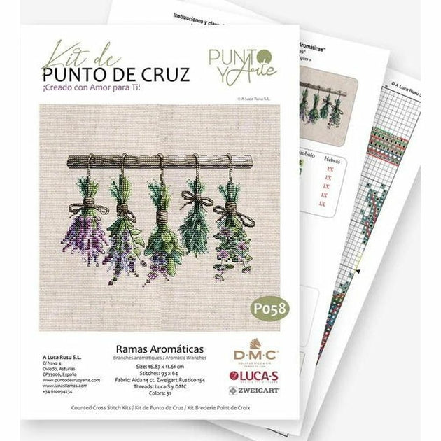 Kit de broderie à réaliser au point de croix compté,  point arrière,  sur une toile zweigart Aida Rustico 5.4 points au cm,  les fils coton mouliné de Luca-S et DMC 31 couleurs triés sur carte,  une aiguille N°26 de John James,  (le dessin n'est pas imprimé sur la toile),  suivant le diagramme en couleurs,  explications fournie,  Dimensions de l'ouvrage terminé : 17 x 12 cm .
