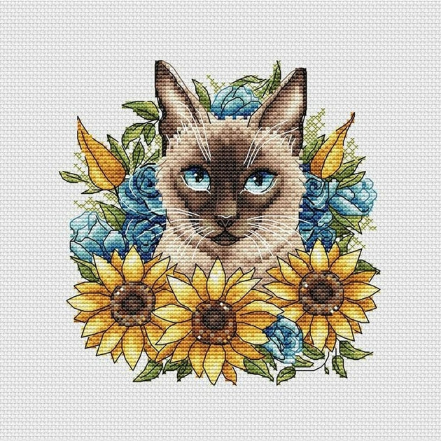 Chat Siamois avec tournesols P020 Ava .