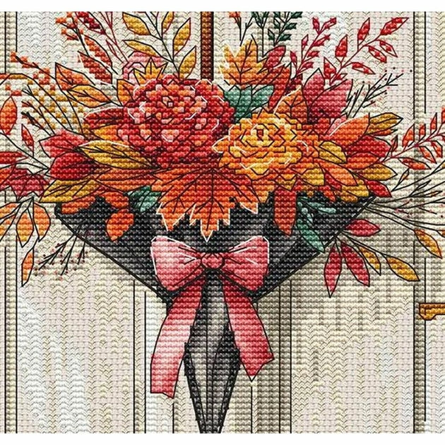 Kit de broderie à réaliser au point de croix compté,  point arrière,  point nœud,  sur une toile zweigart Aida blanche 6.3 points au cm,  les fils coton mouliné de Luca-S et DMC 46 couleurs dont 2 mélanges triés sur carte,  une aiguille N°26 de John James,  (le dessin n'est pas imprimé sur la toile),  suivant le diagramme en couleurs,  explications founie,  Dimensions de l'ouvrage terminé : 17 x 17 cm .