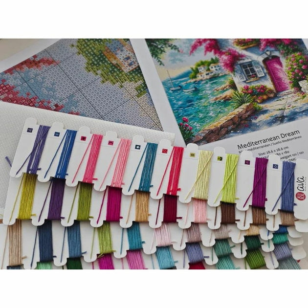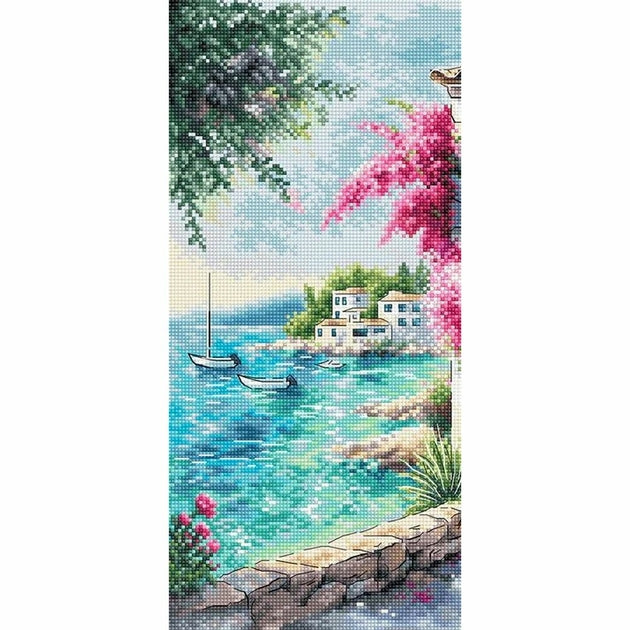 Kit de Broderie au point de croix compté, point arrière, sur une toile Zweigart Aida blanche 6.3 points au cm, les fils à broder coton mouliné de Luca-S et DMC 60 couleurs dont 22 mélanges triés sur carte, (le dessin n'est pas imprimé sur la toile), Aiguille N°26 de John James, diagramme en couleurs, explications, Dimensions de l'ouvrage terminé : 28.6 x 28.6 cm .