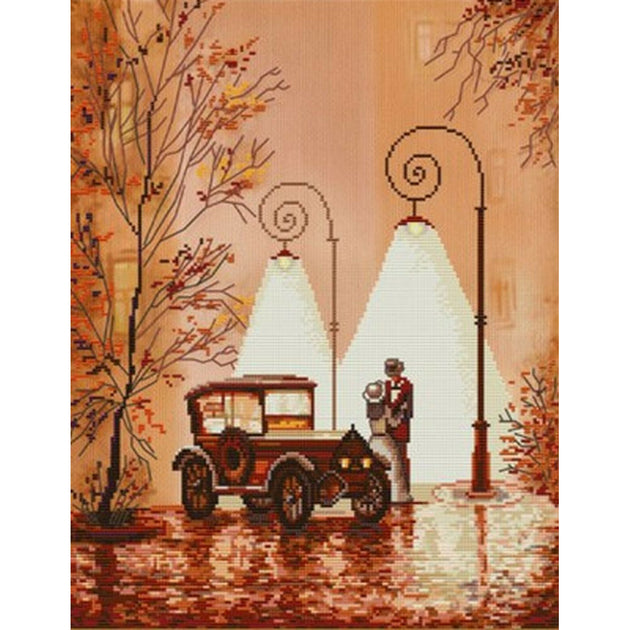 Broderie partielle sur un fond imprimé : seuls les motifs de premier plan sont brodés au point de croix compté sur toile Aida 5.4 points au cm -