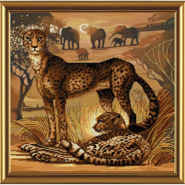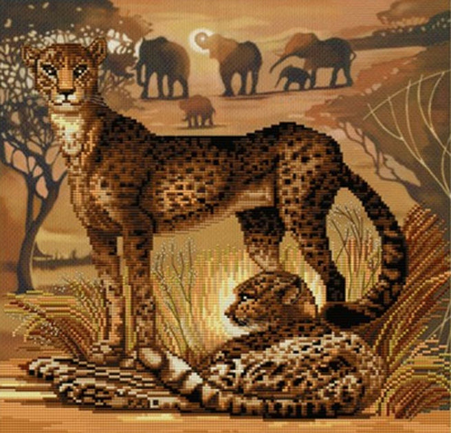 seuls les motifs de premier plan sont brodés au point de croix compté d'après le diagramme et explications fournie - sur toile Aida 5.4 points au cm -