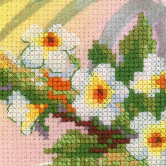 ( Le dessin de fond est imprimé sur la toile Aida, seuls les motifs de premier plan sont à broder au point de croix compté)