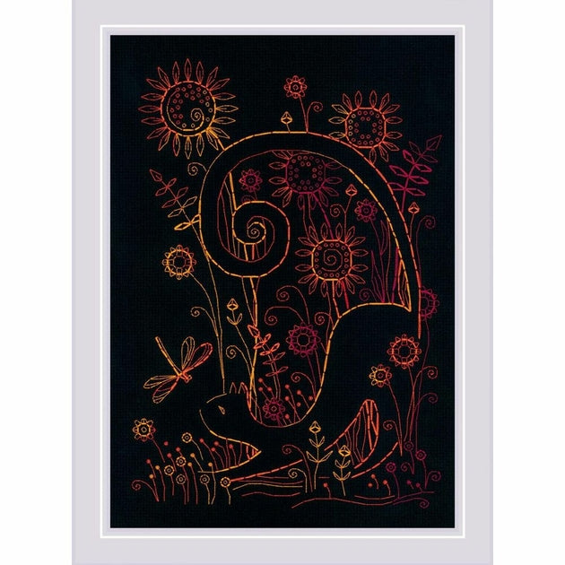 Kit de broderie Blacwork à réaliser au point piqûre, sur une toile zweigart Aida noir 5.4 points au cm, les fils Anchor 3 couleurs triés sur carte, (le dessin n'est pas imprimé sur la toile) suivant le diagramme en couleurs, explications fournie .