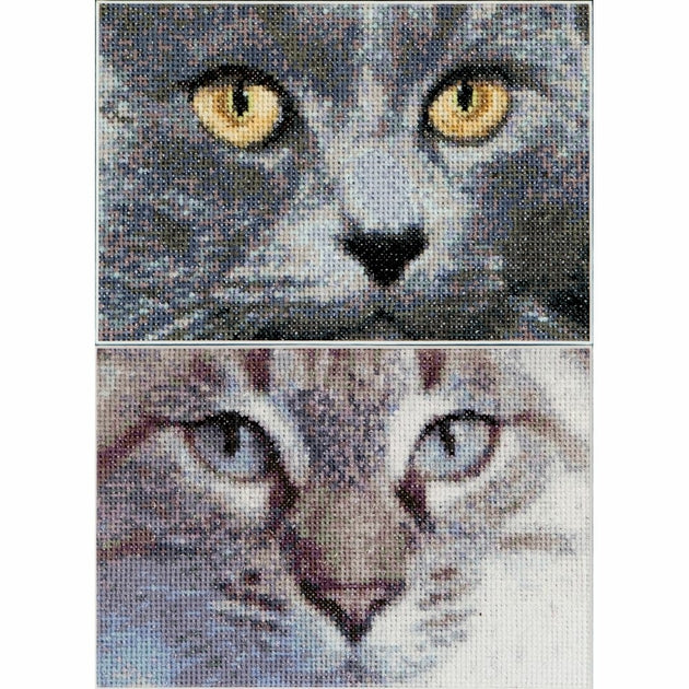 Kit de Broderie à réaliser au point croix compté, les deux portraits de chats, sur une toile zweigart Aida blanche 6.4 points au cm, les fils DMC coton mouliné triés sur carte, suivant le diagramme en noir et blanc, explications fournie, (le dessin n'est pas imprimé sur la toile), Dimensions du modèle terminé : 2 x 16,5 x 11,5 cm .