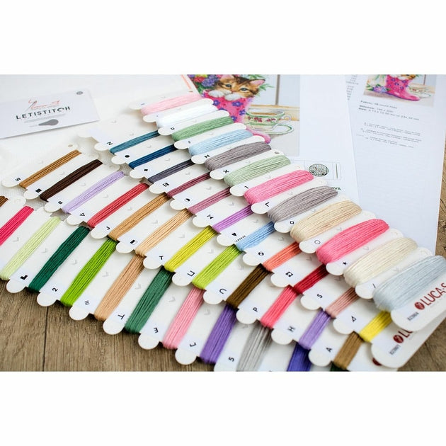 Kit de Broderie à réaliser au point de croix compté,  demi point croix,  point arrière,  sur une toile Zweigart Aida blanche 6.3 points au cm,  les fils Anchor 47 couleurs triés sur carte,  (le dessin n'est pas imprimé sur la toile),  suivant le diagramme en noir et blanc,  explications fournie .