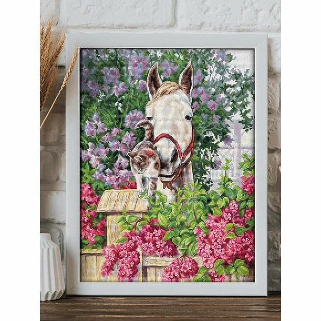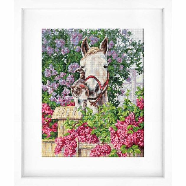 Kit de Broderie à réaliser au point de croix compté, sur une toile Zweigart Aida blanche 6.3 points au cm, les fils coton mouliné Luca-S 53 couleurs triés sur carte, (le dessin n'est pas imprimé sur la toile), suivant le diagramme en noir et blanc, explications fournie, Dimensions du modèle terminé : 25 x 32 cm .