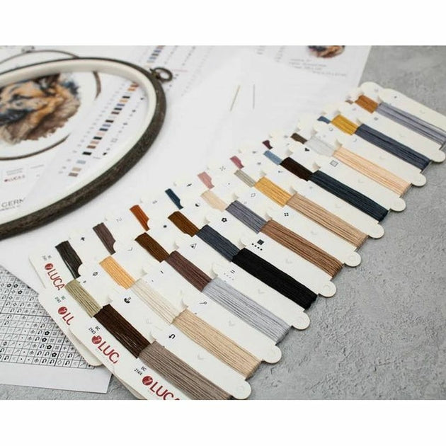 Kit de broderie à réaliser au point de croix compté, demi point croix, point arrière, sur une toile zweigart Aida blanche 6.3 points au cm, les fils Luca-S 37 couleurs triés sur carte, (le dessin n'est pas imprimé sur la toile), suivant le diagramme en noir et blanc, explications fournie ainsi que le cercle ovale Nurge 22 x 27 cm, Dimensions de l'ouvrage terminé : 17 x 21 cm.