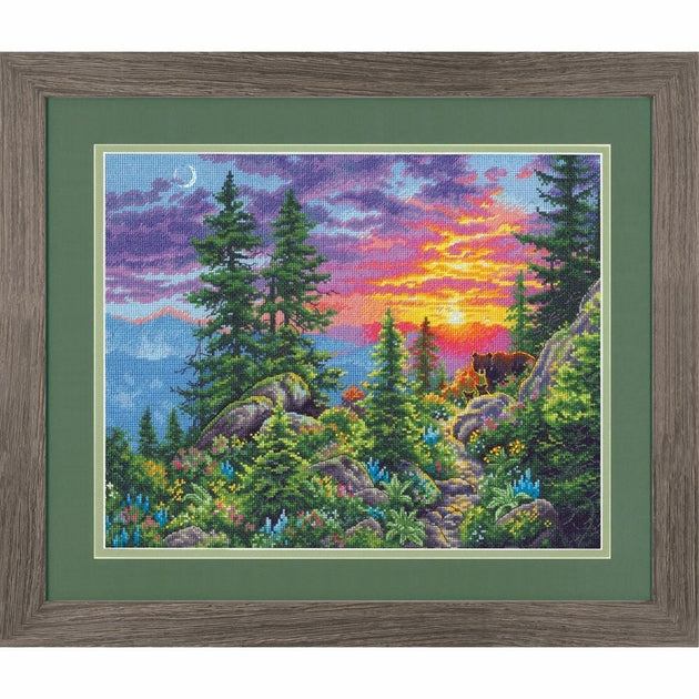 Kit de Broderie à réaliser au point de croix compté, demi point croix sur une toile Aida gris bleu 6.2 points au cm, les fils DMC coton mouliné triés sur carte ( le dessin n'est pas imprimé sur la toile ), suivant le diagramme et explications fournie, Dimensions de l'ouvrage terminé : 35,5 x 27,9 cm, Sentier de montagne 70-35383 Dimensions .