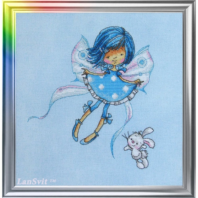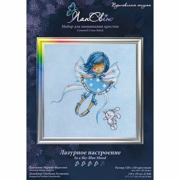 Kit de broderie à réaliser au point de croix compté, point arriére,  sur une toile zweigart Murano étamine bleu clair 12 fils au cm,  les fils à broder DMC 14 couleurs dont 5 mélanges triés sur carte,  fils métallisé Kreinik 4 couleurs,  perles cristal Swarouski,  (le dessin n'est pas imprimé sur la toile),  suivant le diagramme,  explications,  Dimensions du modèle terminé : 19 x 19 cm .