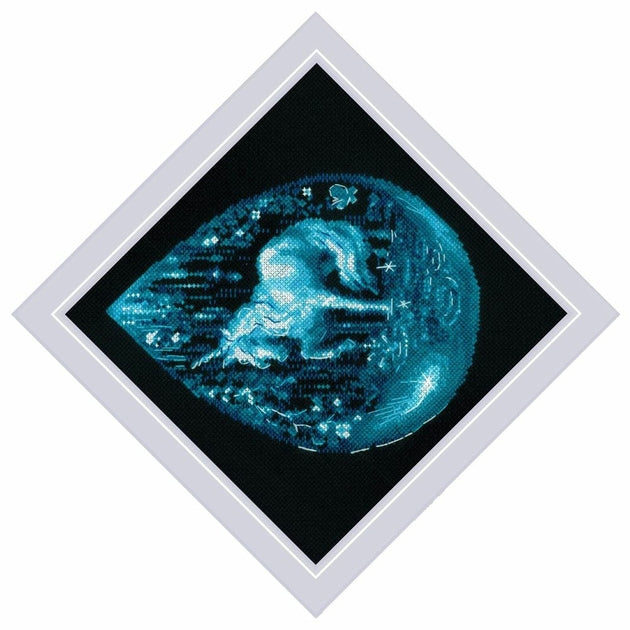 Kit de broderie à réaliser au point de croix compté, sur une toile zweigart Aida noir 5.4 points au cm, Les fils Acrylique 7 couleurs triés sur carte (Le dessin n'est pas imprimé sur la toile), suivant le diagramme en couleurs, explications fournie,