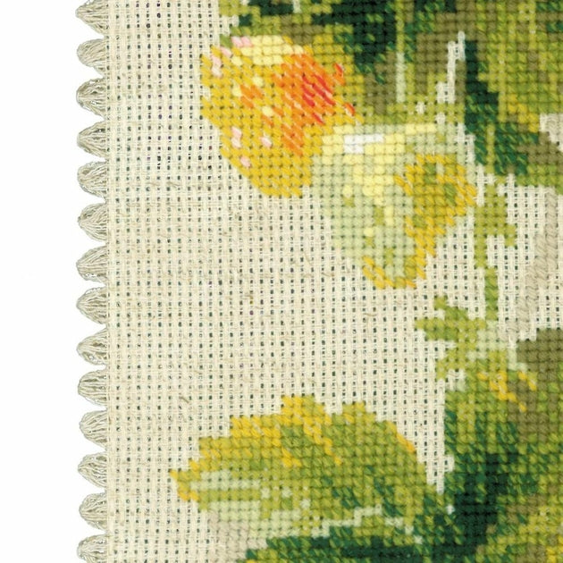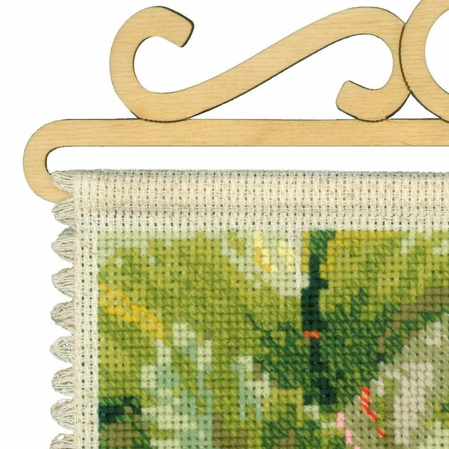 Kit de broderie à réaliser au point de croix compté sur une toile Zweigart Aida flaxen 5.4 points au cm, les fils acrylique 18 couleurs et 1 couleurs Anchor, cintre en bois (le dessin n'est pas imprimé sur la toile), suivant le diagramme et explications fournie, Dimensions de l'ouvrage terminé : 19 x 48 cm,