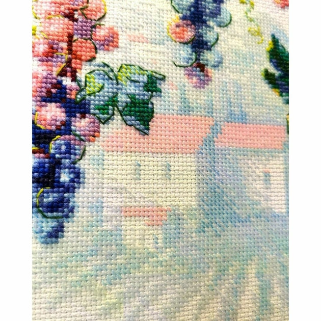 Kit de broderie à réaliser au point de croix compté,  demi point croix,  sur une toile zweigart Aida blanche 5.4 points au cm,  Les fils Acrylique 21 couleurs triés sur carte (Le dessin n'est pas imprimé sur la toile),  suivant le diagramme en couleurs,  explications fournie,