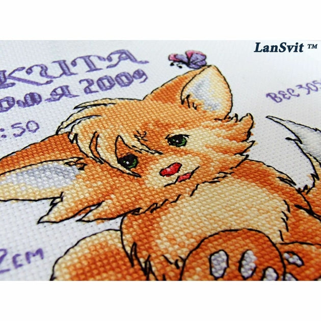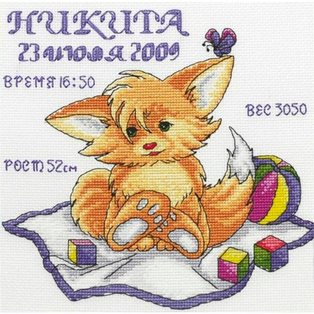 Kit de Broderie à réaliser au point de croix compté, sur une toile zweigart Aida blanche 6.4 points au cm, les fils à broder DMC coton mouliné de 19 couleurs triés sur carte, fils métalliques Kreinik, Mohair, alphabet et chiffre pour personnalisé, suivant le diagramme, explications, (le dessin n'est pas imprimé sur la toile), Dimensions du modèle terminé : 18 x 18 cm .