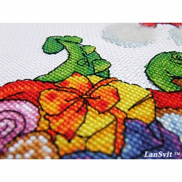 Kit de Broderie à réaliser au point de croix compté,  sur une toile zweigart aida blanche 6.4 points au cm,  les fils à broder DMC coton mouliné 24 couleurs triés sur carte,  fils métalliques Kreinik,  Mohair,  (le dessin n'est pas imprimé sur la toile),  suivant le diagramme,  explications .