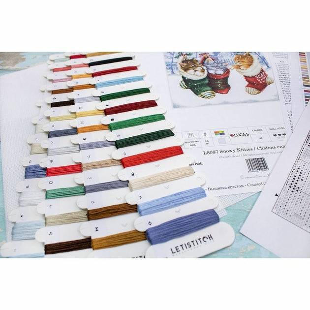 Kit de broderie à réaliser au point de croix compté,  demi point croix,  point  nœud,  sur une toile zweigart Aida blanche 6.3 points au cm,  les fils Luca-S 42 couleurs triés sur carte,  (le dessin n'est pas imprimé sur la toile),  suivant le diagramme en noir et blanc,  explications fournie .