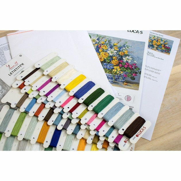 Kit de Broderie à réaliser au point de croix compté,  sur une toile Zweigart Aida blanche 7.2 points au cm,  les fils Anchor 65 couleurs triés sur carte,  (le dessin n'est pas imprimé sur la toile),  suivant le diagramme en noir et blanc,  explications fournie .