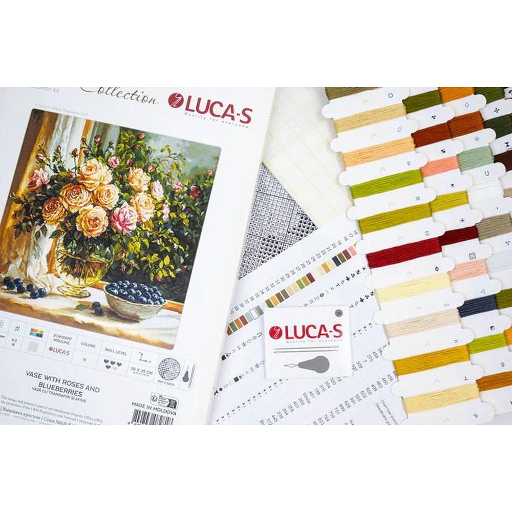 Kit de broderie à réaliser au point de croix compté, sur une toile zweigart Aida 6.3 points au cm à carreaux ( 3543), les fils à broder de Luca-S coton mouliné 61 couleurs triés sur carte, ( le dessin n'est pas imprimé sur la toile), diagramme en noir et blanc, deux aiguilles à broder N°26 avec un enfile aiguille, explications, Dimensions de l'ouvrage terminé : 35 x 35 cm .