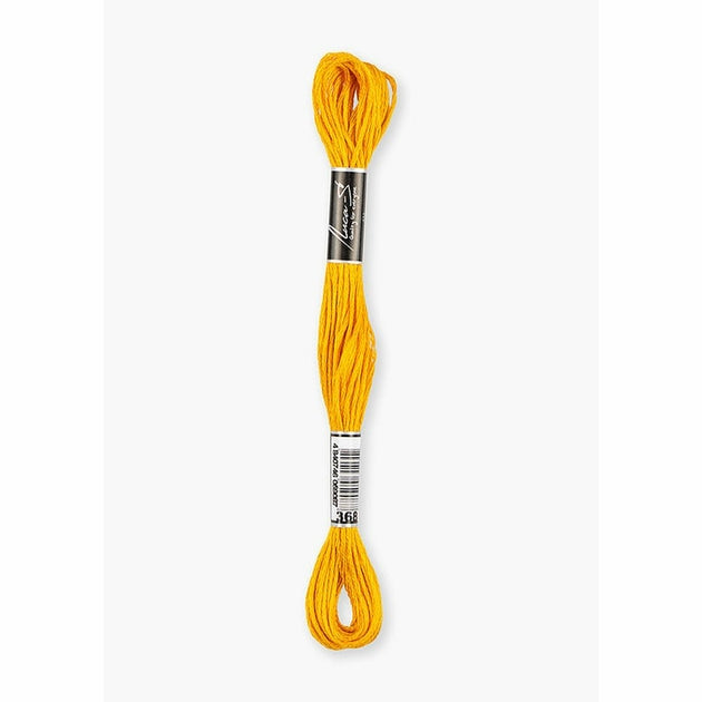 100% coton longue fibre de qualité supérieure à 6 brins,  facilement séparables,  pour la réalisation de toutes les techniques des points de broderie,  pour un travail de qualité,  l'échevette de 8 mètres .