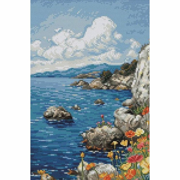 Kit de Broderie à réaliser au point croix compté, sur une toile zweigart Aida blanche quadrillé 6.3 points au cm, les fils coton mouliné Luca-S 59 couleurs triés sur carte, suivant le diagramme en noir et blanc, explications fournie, (le dessin n'est pas imprimé sur la toile) .