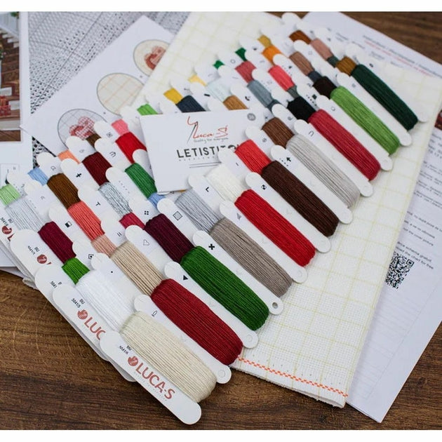 Kit de broderie à réaliser au point de croix compté, sur une toile zweigart Aida blanche quadrillée 6.3 points au cm, les fils Luca-S coton mouliné 65 couleurs triés sur carte, (le dessin n'est pas imprimé sur la toile) suivant le diagramme en noir et blanc, explications fournie, Dimensions de l'ouvrage terminé : 49 x 33 cm .