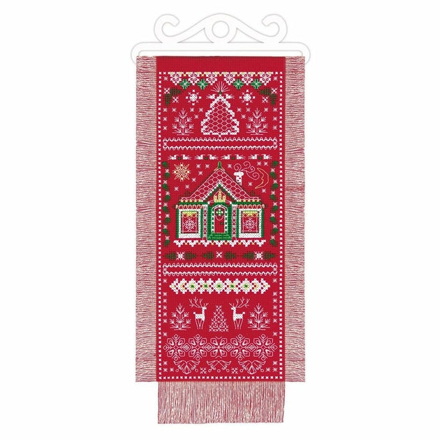 Kit de Broderie à réaliser au point de croix compté, sur une toile zweigart Aida rouge 5.4 points au cm, les fils Anchor 3 couleurs triés sur carte, cintre en bois fournie (le dessin n'est pas imprimé sur la toile), suivant le diagramme, explications fournie, Dimensions du modèle terminé : 15 x 31 cm .
