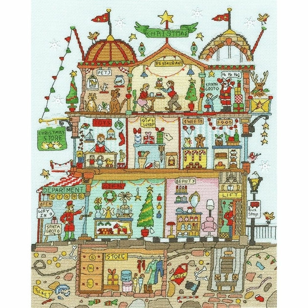 Kit de broderie à réaliser au point de croix compté, sur une toile zweigart Aida bleu clair 6.4 points au cm, les fils coton mouliné triés sur la carte, fil scintillant, sequins en flocons de neige, (le dessin n'est pas imprimé sur la toile), suivant le diagramme en noir et blanc, explications en anglais ( Traduction en français sur demande ), Dimensions de l'ouvrage terminé : 26 x 34 cm .