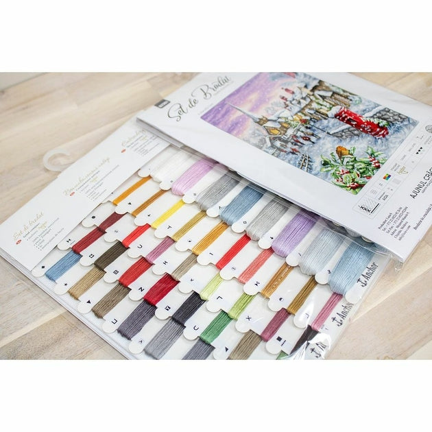 Kit de Broderie à réaliser au point de croix compté, sur une toile Aida Zweigart blanche 7.2 points au cm, les fils Anchor 51 couleurs triés sur carte, (le dessin n'est pas imprimé sur la toile), suivant le diagramme en noir et blanc, explications fournie .