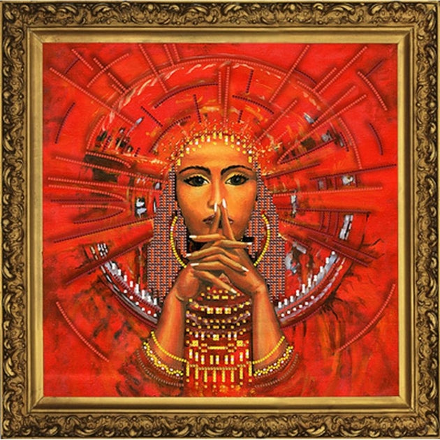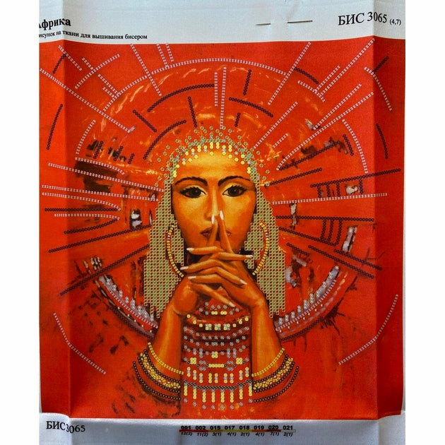 Kit de broderie avec des perles, à réaliser au point de piqûre, sur une toile satin imprimé en couleurs, les perles Preciosa 8 couleurs conditionnées dans des sachets transparents, avec leurs numéro correspondant indiqué sur le coté de la toile, fil blanc pour coudre les perles, aiguille, notice explicative, Dimensions du moèle terminé : 25 x 25 cm .
