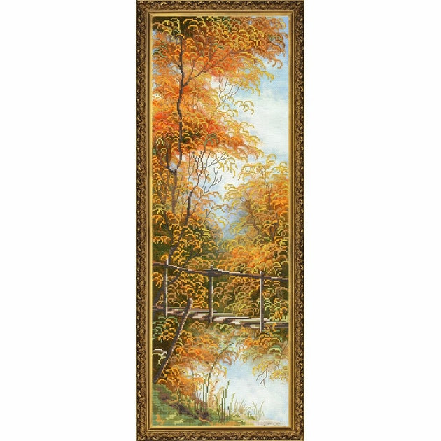 Kit de broderie à réaliser au point de croix compté,  avec les perles Preciosa 3 couleurs conditionnées dans des sachets transparents,  sur une toile Aida imprimé 5.4 points au cm,  les fils à broder Anchor 18 couleurs triés sur carte,  (le dessin n'est pas imprimé sur la toile),  diagramme en couleurs avec explications,  Dimensions de l'ouvrage terminé : 20 x 62 cm.
