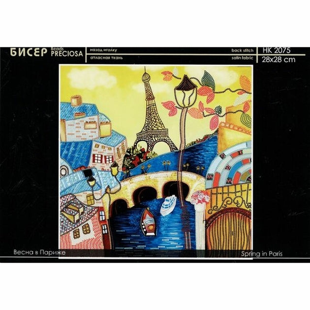 Kit de Broderie avec des perles, à réaliser au point de piqûre,  sur une toile satin imprimé en couleurs, les perles Preciosa 11 couleurs conditionnées dans des sachets transparents,  avec leurs numéro correspondant indiqué sur le coté de la toile,  fil blanc pour coudre les perles, aiguille, notice explicative,  Dimensions de l'ouvrage terminé : 28 x 28 cm .
