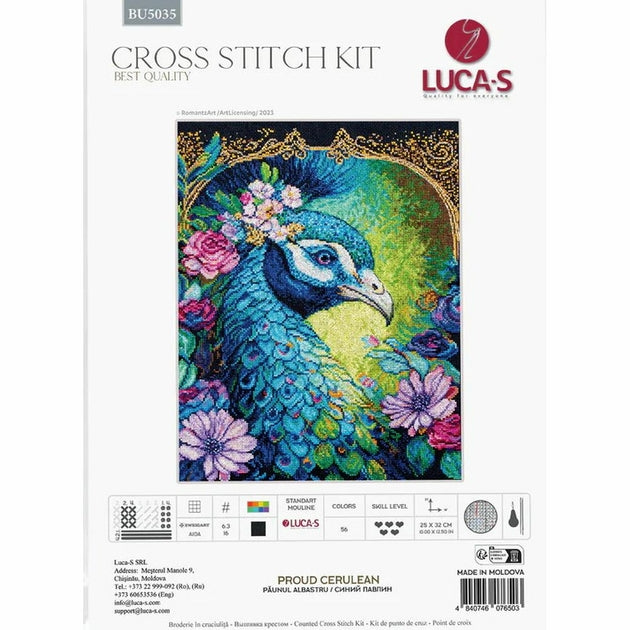 Kit de broderie à réaliser au point croix compté,  sur une toile zweigart Aida noir 6.3 points au cm,  les fils coton mouliné Luca-S 56 couleurs et métallisé triés sur carte,  (le dessin n'est pas imprimé sur la toile),  suivant le diagramme en noir et blanc,  explications fournie,