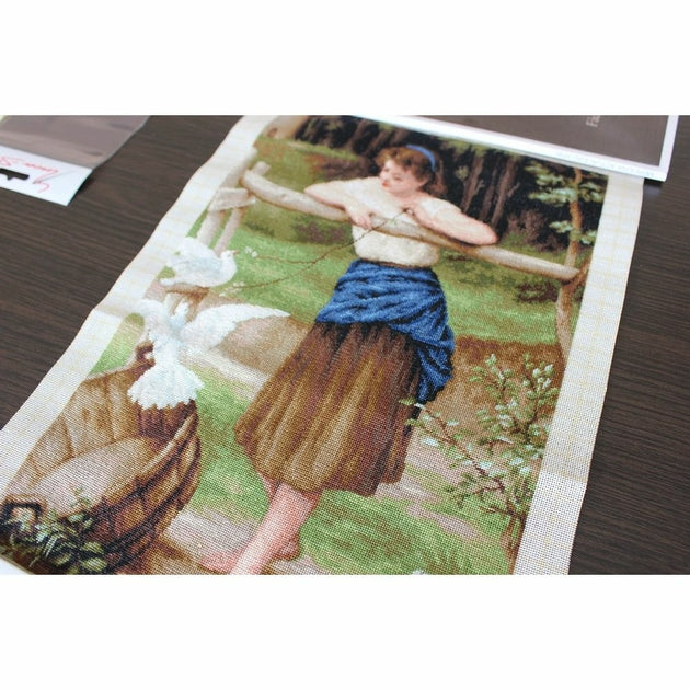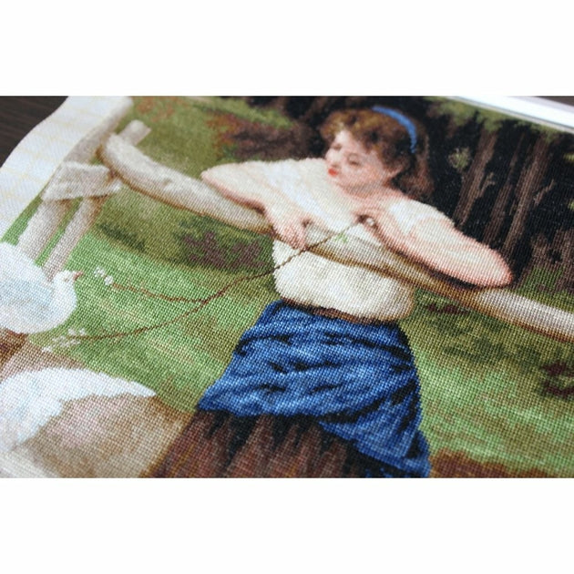 Jeune fille jouant avec des pigeons B516 Luca-s .