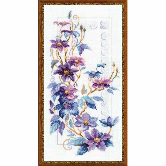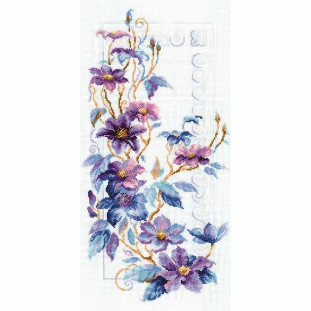 Kit de broderie à réaliser au point de croix compté,  sur une toile Zweigart Aida blanche 5.4 points au cm,  les fils Anchor 17 couleurs triés sur carte (le dessin n'est pas imprimé sur la toile),  suivant le diagramme,  explications fournie,  Dimensions de l'ouvrage terminé  : 25 x 50 cm.