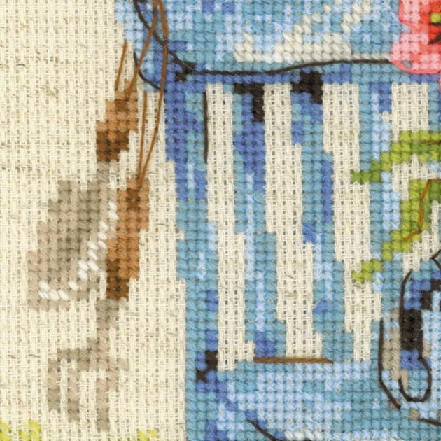 sur une toile flaxen Zweigart Aida 5.4 points au cm - fils acrylique 19 couleurs - 1 couleur coton mouliné -