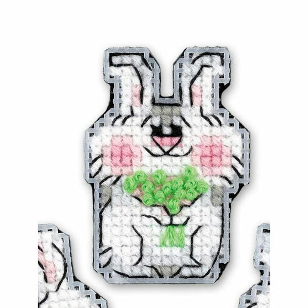 Kit de broderie à réaliser au point de croix compté, sur une toile PVC transparente 4.4 points au cm, les fils acrylique 8 couleurs triés sur carte, feutrine, 3 aimants, 3 anneaux (le dessin n'est pas imprimé sur la toile), suivant le diagramme, explications fournie, Dimensions de chaque Magnets terminé : 4 x 6 cm .