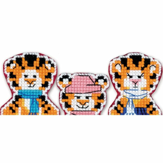 Kit de broderie à réaliser au point de croix compté,  sur une toile PVC transparente 4.4 points au cm,  les fils acrylique 7 couleurs triés sur carte,  feutrine,  3 aimants (le dessin n'est pas imprimé sur la toile),  suivant le diagramme,  explications fournie,