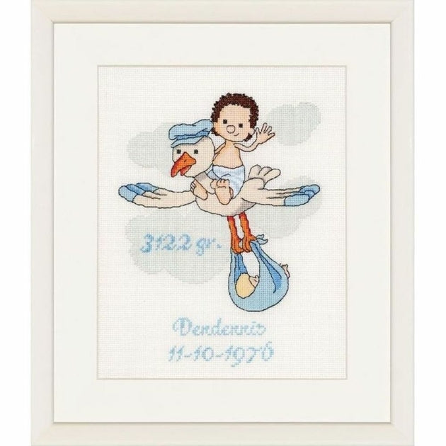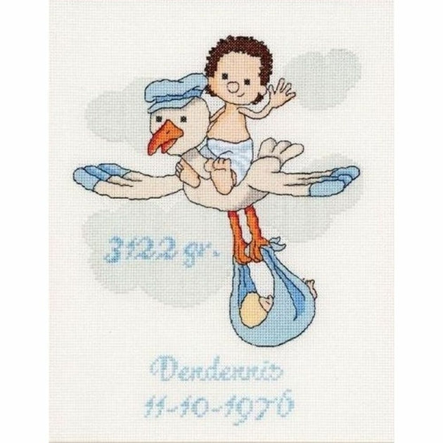 Kit de Broderie à réaliser au point de croix compté, sur une toile zweigart Aida blanche 5.4 point au cm, les fils à broder coton mouliné DMC triés sur carte, alphabet et chiffre pour personnaliser, (le dessin n'est pas imprimé sur la toile), suivant le diagramme en noir et blanc, explications, Dimensions du modèle terminé : 24 x 30 cm .