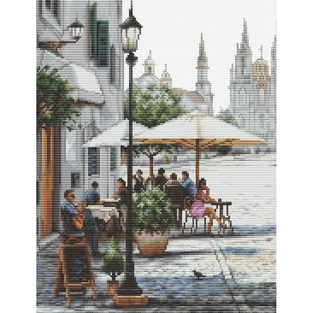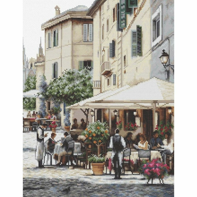 Kit de broderie à réaliser au point de croix compté sur une toile Zweigart Aida blanche 7.1 points au cm,  les fils Anchor 62 couleurs triés sur carte (Le dessin n'est pas imprimé sur la toile),  suivant le diagramme,  explications fournie,  Dimensions du modèle terminé : 47 x 31 cm,