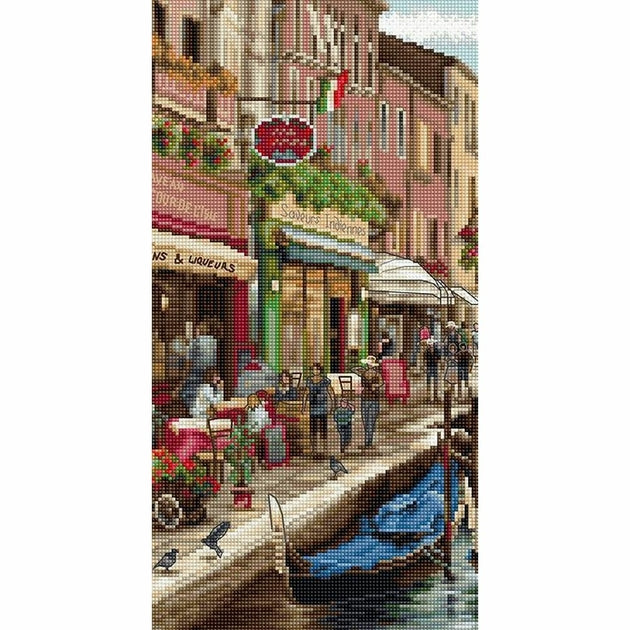 Kit de Broderie à réaliser au point de croix compté,  sur une toile Zweigart Aida blanche 6.3 points au cm,  les  fils coton mouliné Luca-S 61 couleurs triés sur carte,  (le dessin n'est pas imprimé sur la toile),  suivant le diagramme en noir et blanc,  explications fournie,  Dimensions du modèle terminé : 58 x 30 cm .    Venice  BU5003  Luca-S .