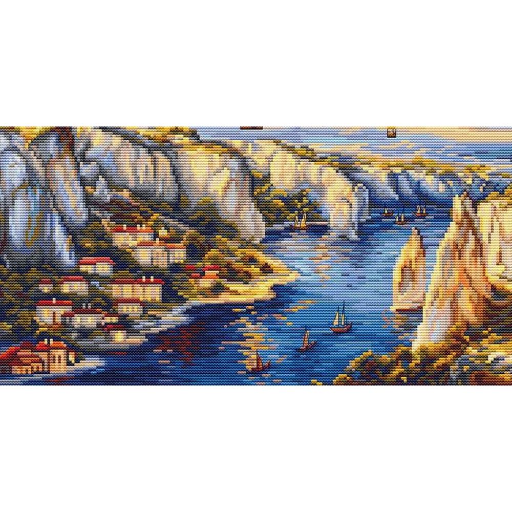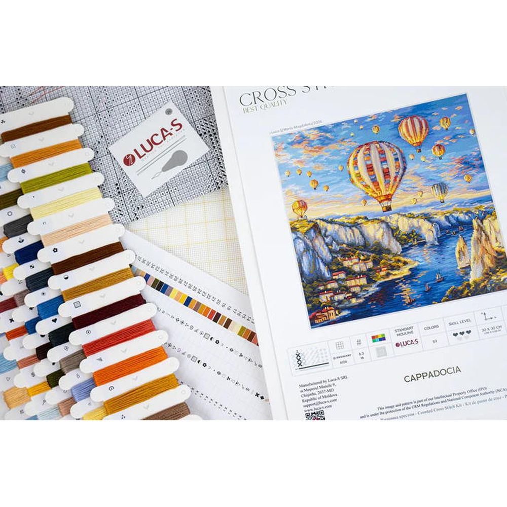 Embroidery kit to be made in counted cross stitch , backstitch, on a zweigart Aida fabric 6.3 stitches per cm checked (3464) , Luca-S cotton stranded embroidery threads 57 colors sorted on card, (the design is not printed on the canvas), black and white diagram, two No. 26 embroidery needles with a needle threader, instructions, Dimensions of the finished work: 30 x 30 cm.